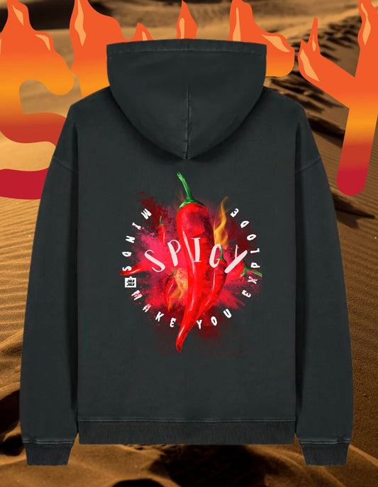 Spicy Minds Hoodie – Kunstzinnig Statement in Vintage Black limited edition unisek hoodie