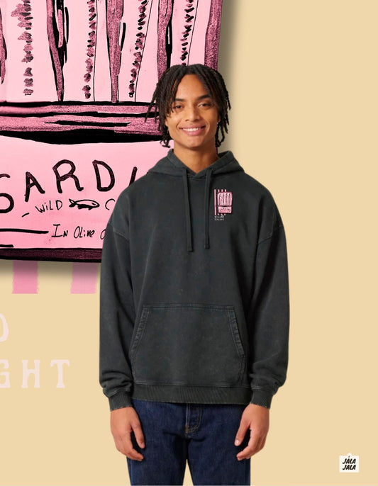 Vintage oversized Black Hoodie - Sardines Wild caught