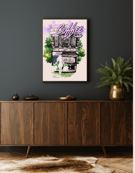 Koffiecup Kunstposter - hand getekend, digitaal print.